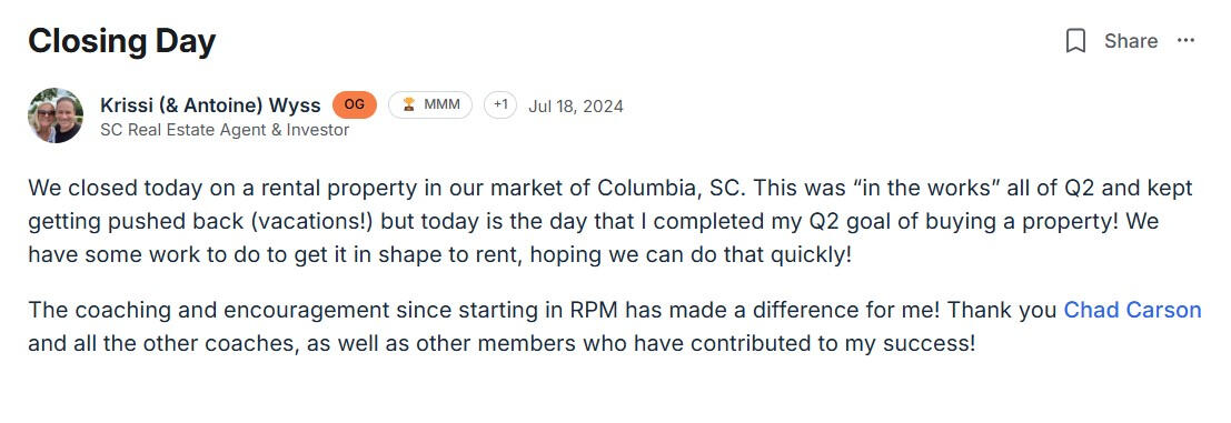 I'm from Oklahoma and real estate investing has been a vehicle for me to achieve financial independence so I'm able to spend more time doing what matters. For me, that's time with my wife and 3 young kids, farming, continuing to do deals and work on improving what I like to call our micro family office!I've been fortunate to learn from Coach Carson over the last 4 years how to build a small and mighty portfolio of rentals that have become our main source of income. I now get the privilege to teach as an assistant coach with Chad and couldn't be more excited to help other people break free from the financial grind to focus on what matters most to them! Let's go!